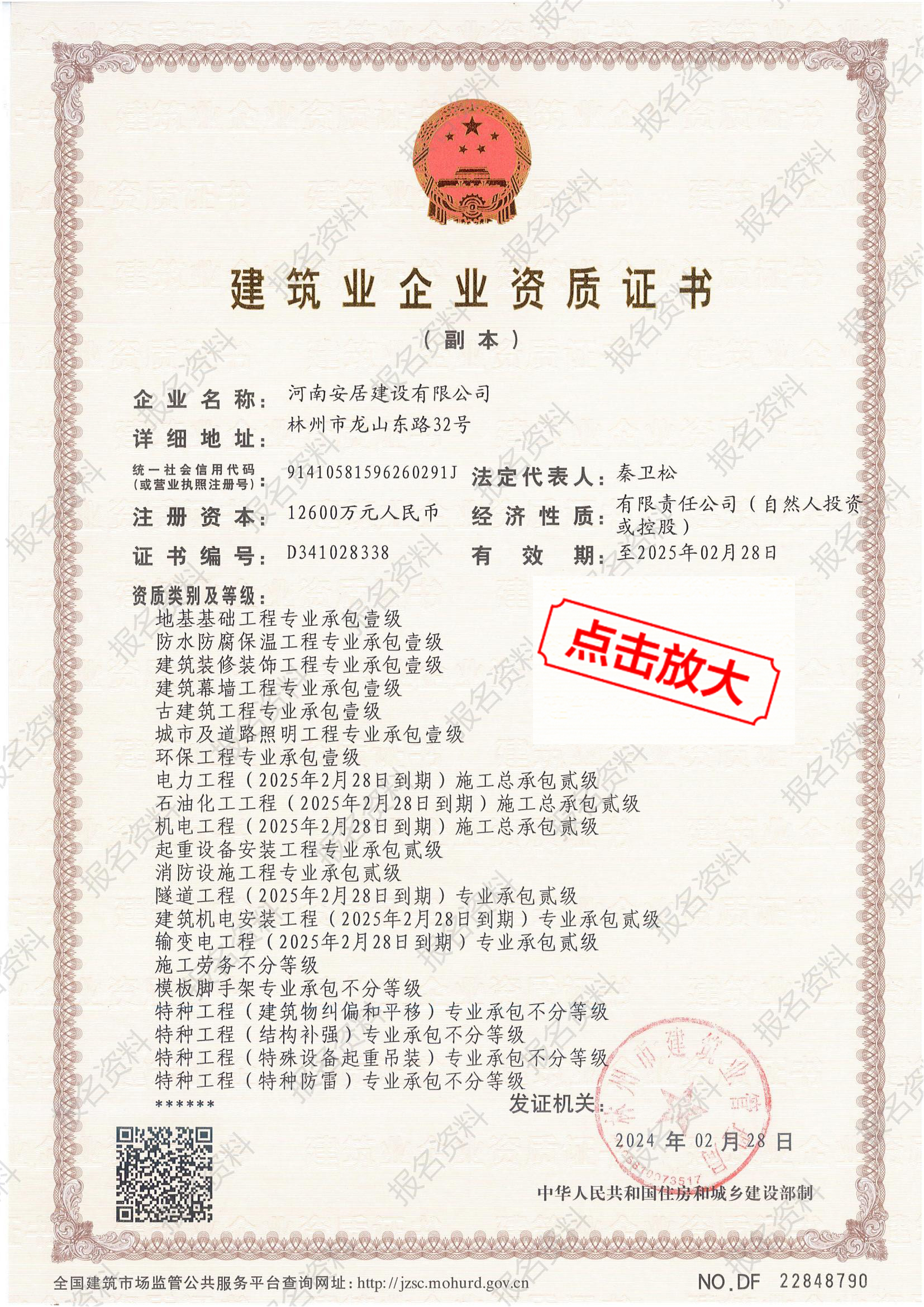 滔滔黃河哺育了中華民族拼搏向上的奮斗精神,巍巍太行造就了中原兒女的紅旗渠精神。百萬林州人下太行,鑄就了中國建筑之鄉(xiāng)響當當?shù)囊燮放啤:幽习簿咏ㄔO(shè)有限公司從誕生起血液里就流淌著紅色基因,秉承“安得廣夏千萬間,大庇天下寒士俱歡顏”的擔(dān)當精神,用鋼筋混凝土筑起了高樓大廈,也用一流品質(zhì)、家國情懷打造了安居建設(shè)的輝煌成績。公司成立于2012年,注冊資金12600萬元,公司成立至今,擁有建筑,市政施工總承包等十項一級資質(zhì);其他二級等資質(zhì)共二十余項。公司秉承質(zhì)量第一,服務(wù)為主,堅持垂直管理,從不設(shè)立分公司等分支機構(gòu)。